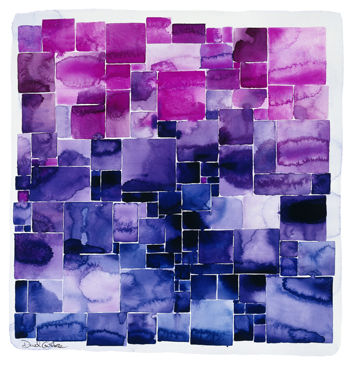 David has since discovered that his art is inspired by the variety of mountain and urban terrain he explored throughout his extensive travels in North America and his years of living, working and traveling throughout Europe. David draws from his exposure to the colors and shapes of these very different places as he combines paper, brush, water and oil, color, air, surface tension and gravity to create each painting.