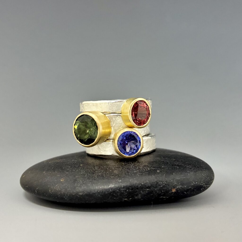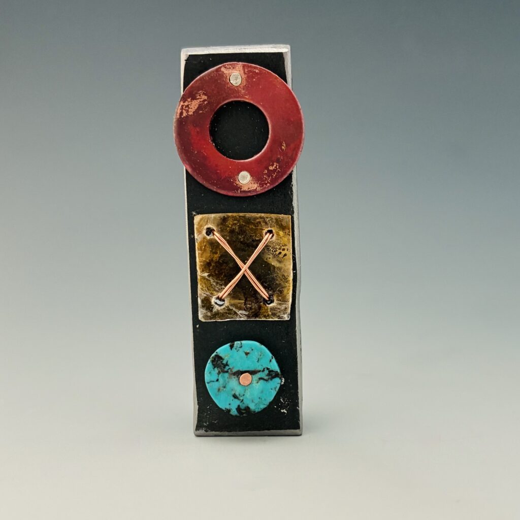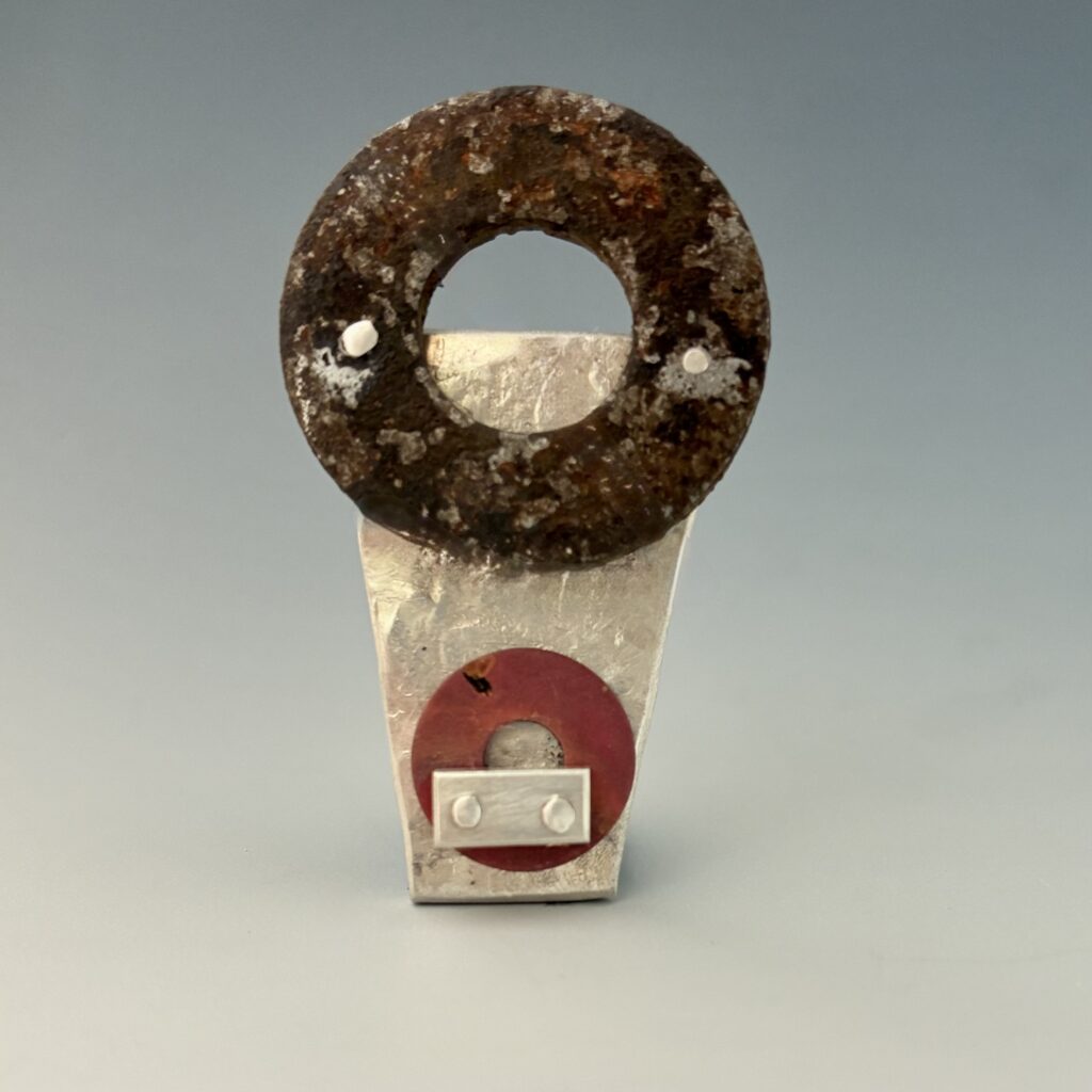 Kim Harrell is an award-winning silversmith and jewelry artist who makes distinctly textured and clean-lined jewelry and silver wares using precious metals and gemstones or unconventional materials such as felt, rubber and steel. She studied at the London Metropolitan University, Sir John Cass School of Art, Architecture and Design where she obtained her B.A. in Silversmithing, Jewellery and Allied Crafts. Kim was born in Denver, CO and currently resides in Aurora, CO where she runs her studio and teaches at The Art Students League of Denver & Metropolitan State University in Denver. Kim is the recent past President of the Colorado Metalsmithing Association (CoMA) and remains an active member.