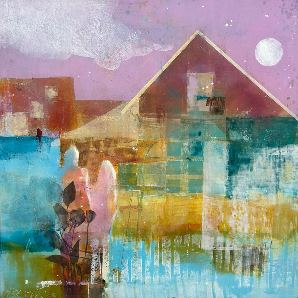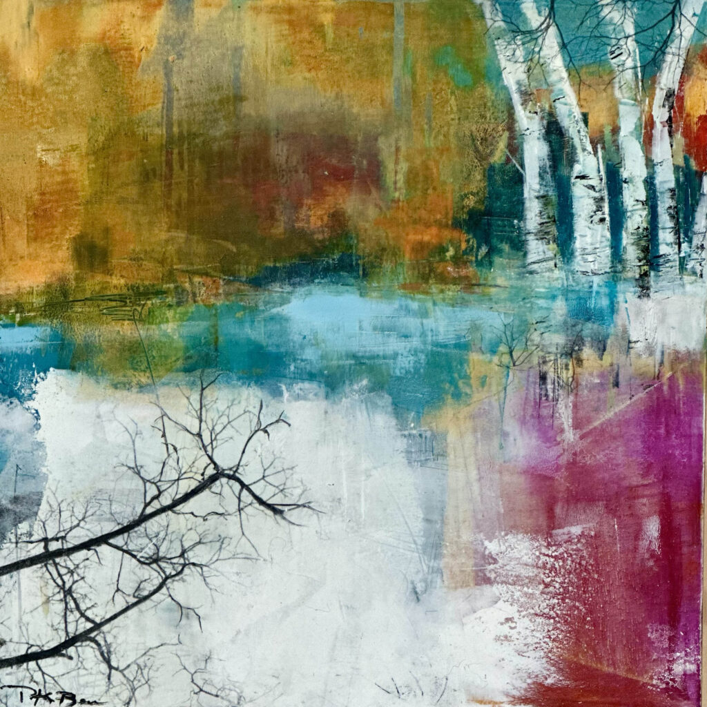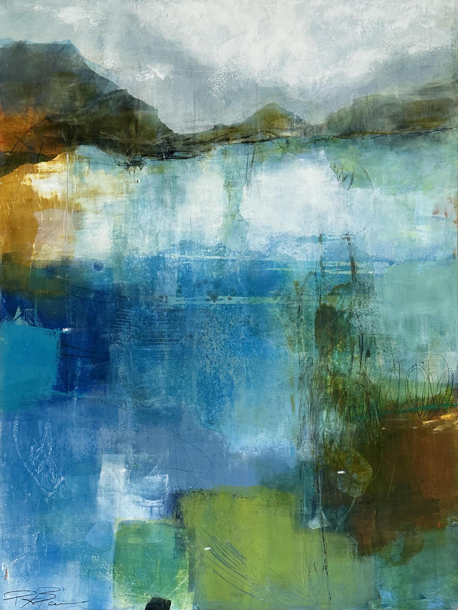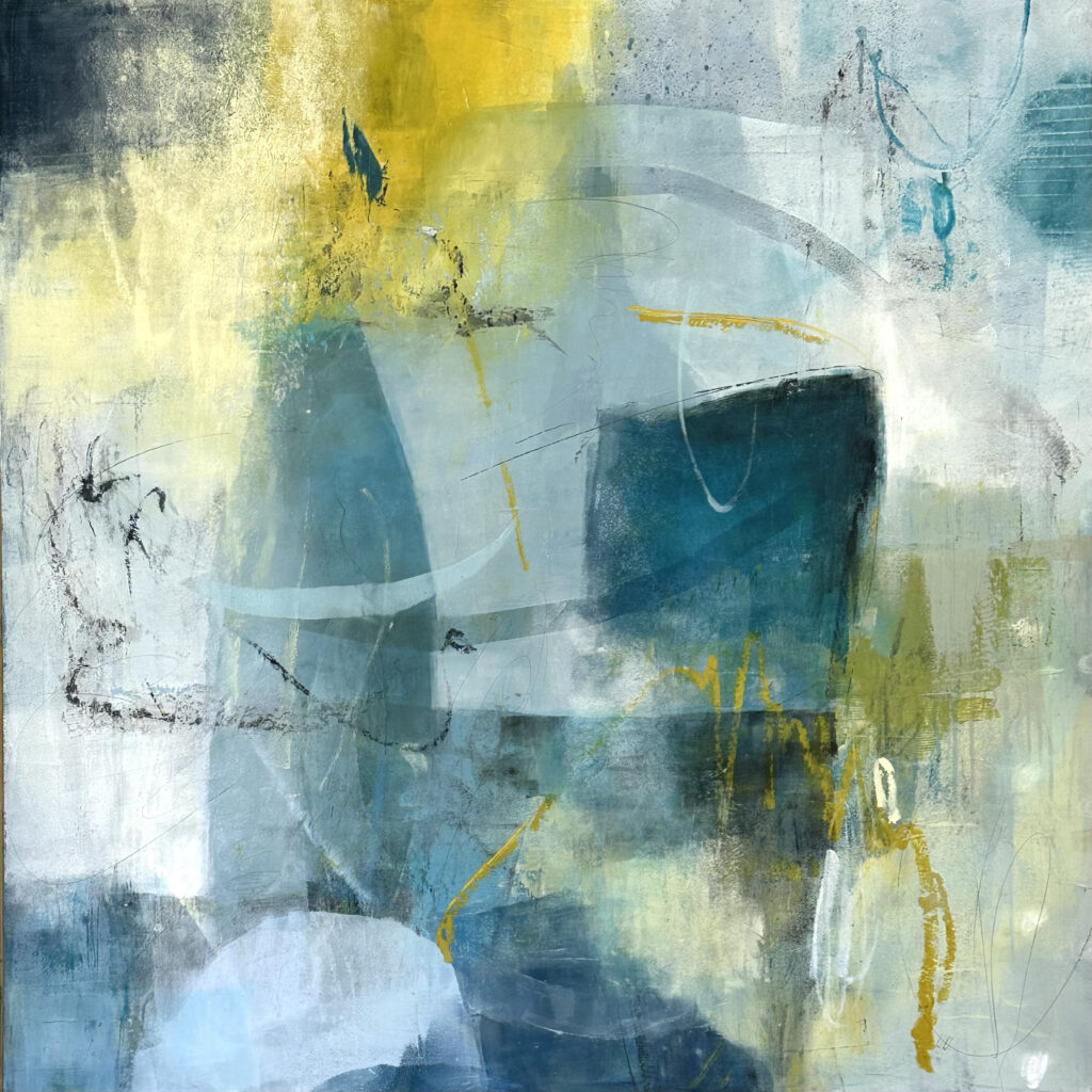 Texture and composition work together to suggest movement and memory. Some paintings lean toward representation, a horizon line, a bloom, the suggestion of architecture. Others move into a more intuitive and experimental space where color and form lead. I allow both to coexist.