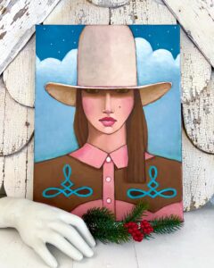 When the cowgirl meets dusk, she shines—bold in her white hat, a hint of fancy as the day fades. Shadows grow, but she stands brighter than ever.