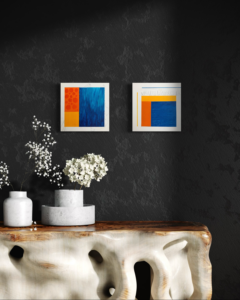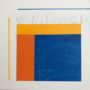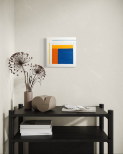 Inspired by a photo taken during a walk along the Glenmore Reservoir near the water. I simplified this image to the essence of what I love in the photo: the orange yellow and red fall colours, the yellow lines on the path and the water; the textures that are so abundant in flowing water, vegetation and even in the asphalt.