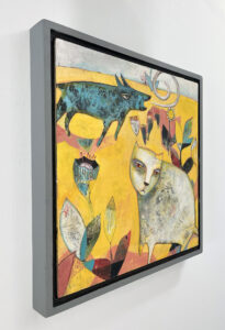 Neighbors is framed in a soft grey wood floater frame, with a black inset strip on the interior (see pictures) of the frame. The picture is wired and ready to hang. Framed measurement is 15.5" x 15.5" x 1.5