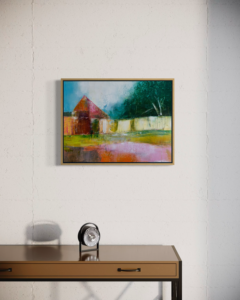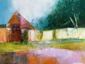 Artist Notes: Old Montgomery's place is an homage to our beautiful neighbors who have grown too old to keep up with their home and have moved on to a place where they may be cared for now. But the thing is, this old place is a few acres away from my house and sits on a small pond and the wildlife still come around. The memories of these sweet neighbors and friends linger with me as I remember her beautiful quilts, her love of coffee and conversation, and how Mr. Montgomery who generously came to my rescue a time or two when we first moved into our home.