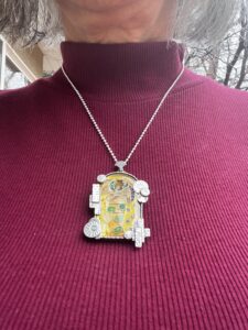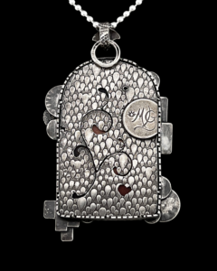 Size: 1.5″ wide x 2.5″ tall on an 18-inch sterling silver ball chain